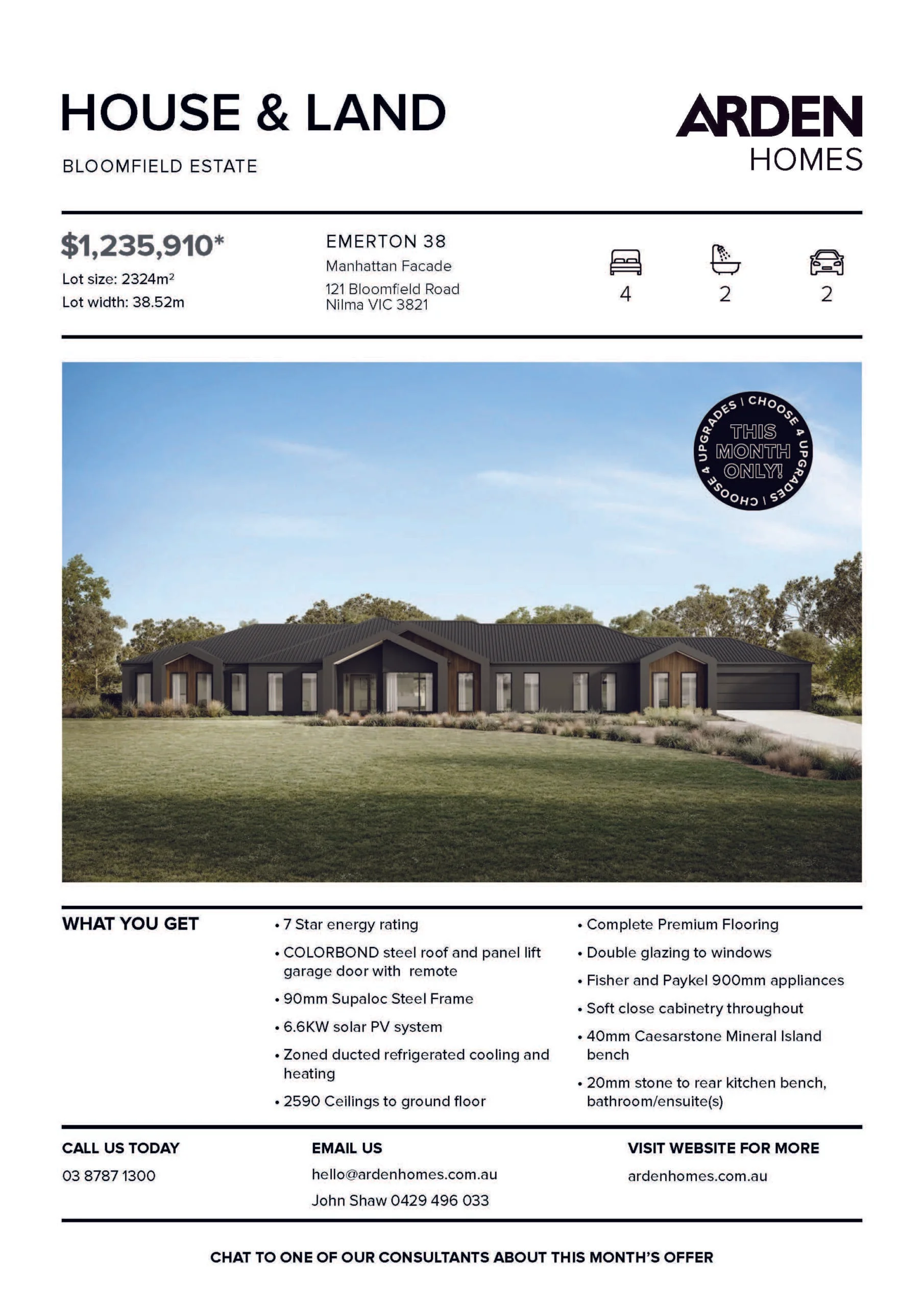 Introducing Bloomfield’s first collection of premium home and land packages from Arden Homes. This package features: