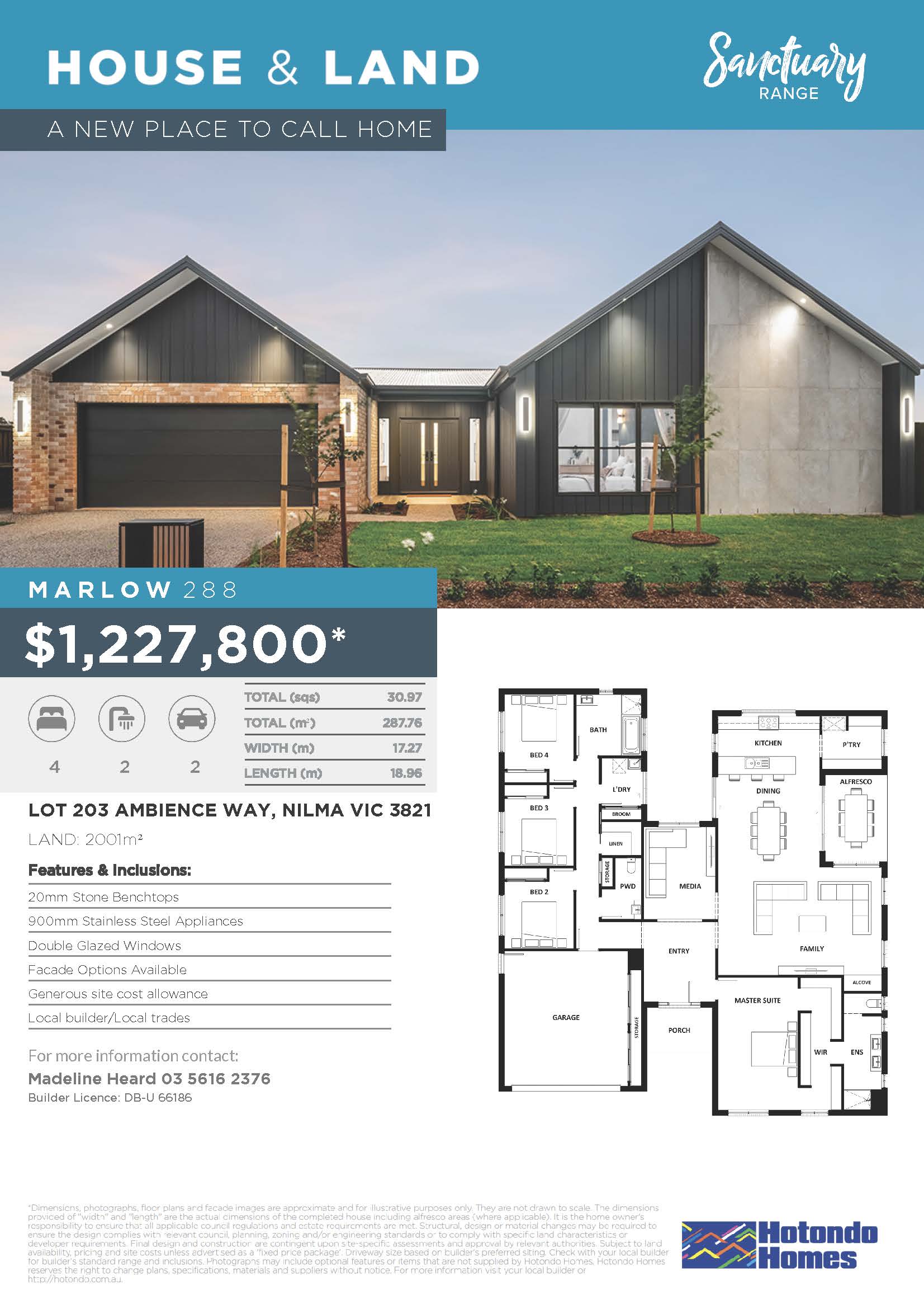 Expand your horizons with a stunning home and land package from the Hotondo Homes Sanctuary Range. This new home design includes: